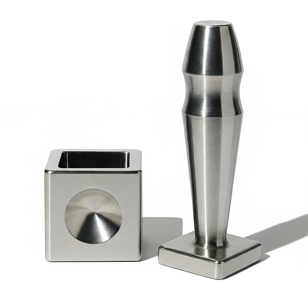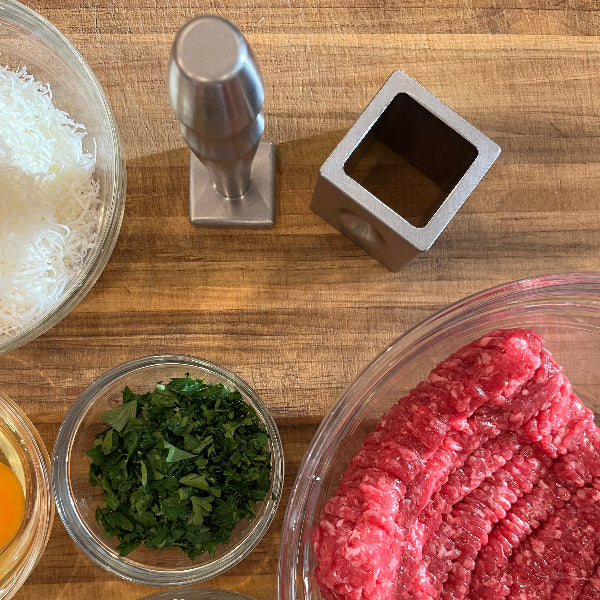 Precision food press. Confidently form recipes into cubes to achieve perfect Maillard browning.